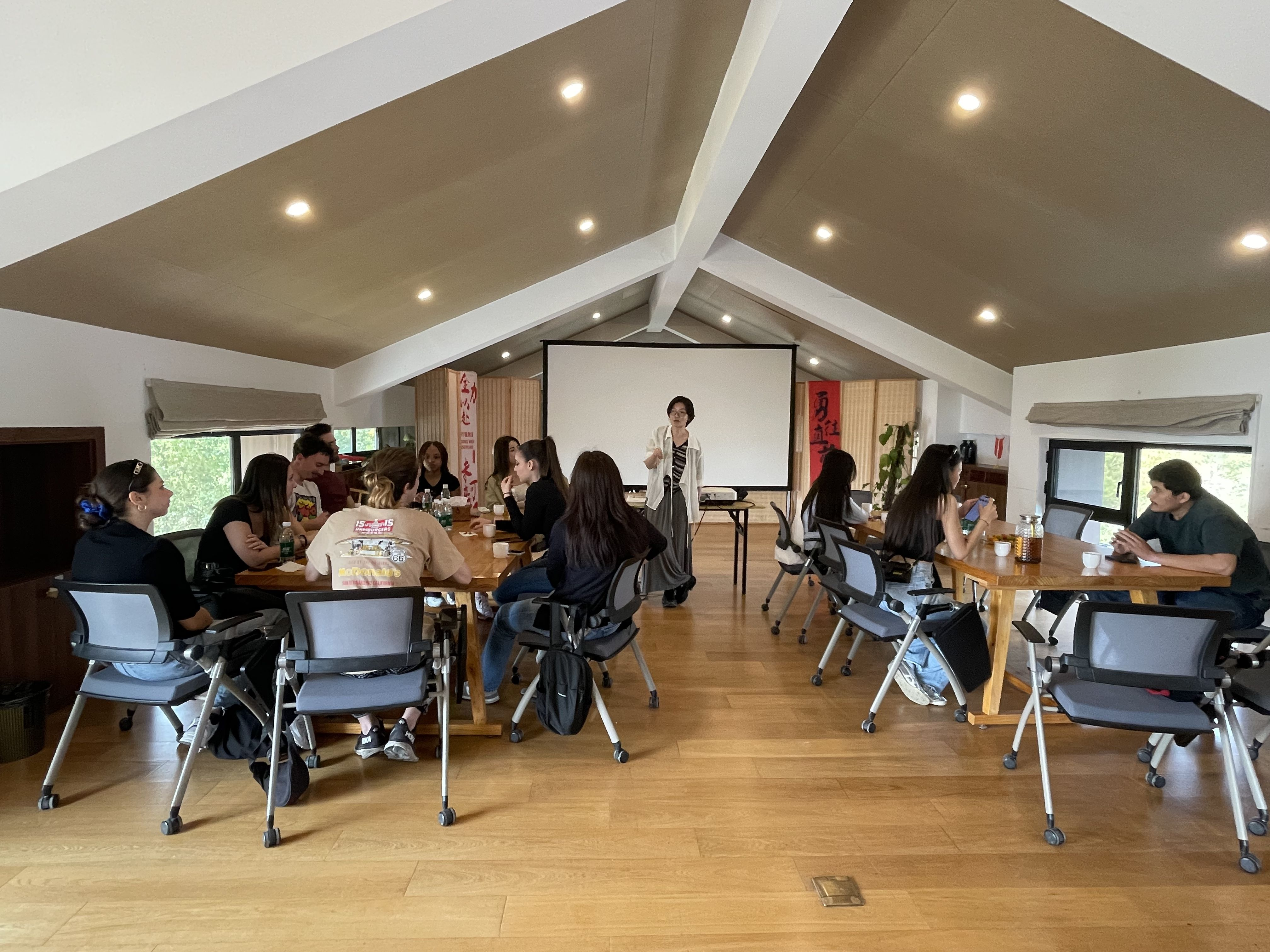 The group then gathered in a multifunctional conference hall, where Professors Zhong Xiaohua and Liu Yumei facilitated a discussion. Students from different countries and cultural backgrounds exchanged their observations and insights on what they had experienced. Over tea and friendly conversation, cultural differences sparked lively discussions and the sharing of diverse perspectives.