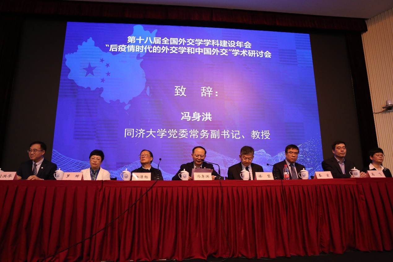 Nearly 100experts and scholars from the Ministry of Foreign Affairs, China Foreign Affairs University, China Institute of International Studies (CIIS), Peking University, Tsinghua University, Fudan University, Tongji University, Jilin University, Wuhan University, Nankai University, Beijing Normal University, Sichuan University, Shandong University, Lanzhou University, China University of Political Science and Law (CUPL), Shanghai International Studies University, Shanghai Academy of Social Sciences, Shanghai Institutes for International Studies (SIIS), National University of Defense Technology (NUDT), Jinan University, Central China Normal University (CCNU), Zhejiang Normal University (ZJNU), and China Centre for International Science and Technology Exchange (CISTE) gathered at Siping campus of Tongji University to discuss about the research on China's diplomatic theory and practice in the post-Covid era around the theme of 'the Discipline of Diplomacy and China's Diplomacy in the Post-Covid Era'. The meeting was held to encourage domestic academia to engage in mutual learning and cooperation for disciplinary development, and pool academic consensus and ideological wisdom on the development of China's diplomacy in the new era.