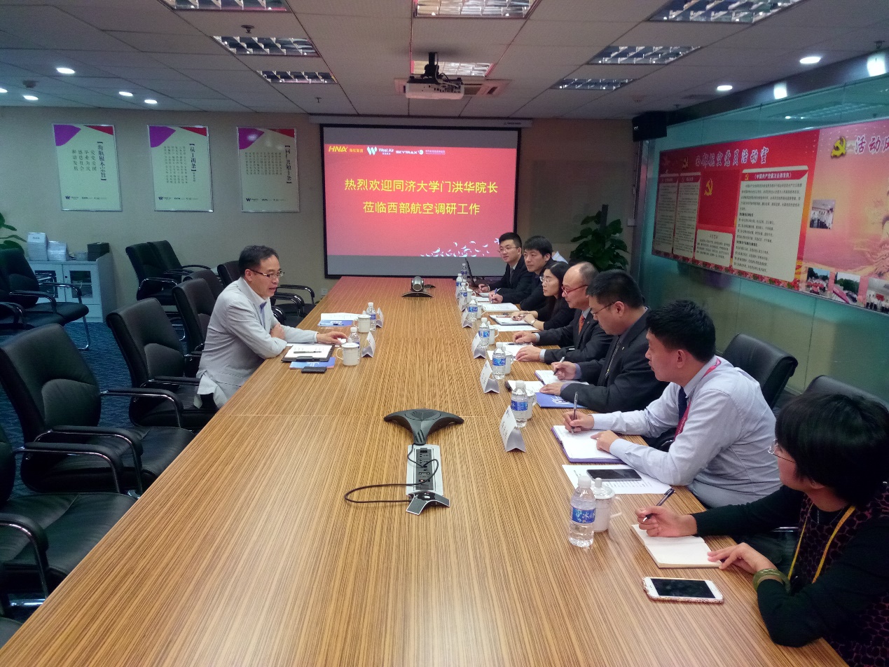 That afternoon, Prof. Men’s delegation went to visit the headquarters of West Air, as part of the survey led by the professor on the philosophy subject of HNA’s spiritual culture. At the meeting, West Air Chairman Pu Ming first welcomed the delegation, and then briefly introduced HNA’s spiritual culture, West Air’s development history, and his understanding of low-cost airlines. The directors from more than 10 departments of West Air gave presentations about West Air’s achievements and innovations in promoting the low-cost concept, advocating low-carbon travel, and implementing the “Internet Plus” strategy, based on their own work experience and the department responsibilities. After listening to the presentations, Prof. Men spoke highly of HNA’s spiritual culture, and appreciated West Air’s high-efficiency and low-cost operation model. He believed that guided by the HNA spirit and oriented by the market, West Air would remain true to its original aspiration of high standards, excellent services and all-round development in consistent with the technical characteristics of the information age.