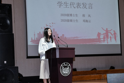 Cheng Feng, a doctoral candidate of 2020, delivered a speech