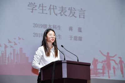 Yu Tiantian, a postgraduate student of 2018, delivered a speech