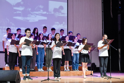 At the end of the ceremony, the leaders presented the SPSIR emblem to the student representatives. Finally, all teachers and students sang the alma mater 'The Song of Tongji '.
