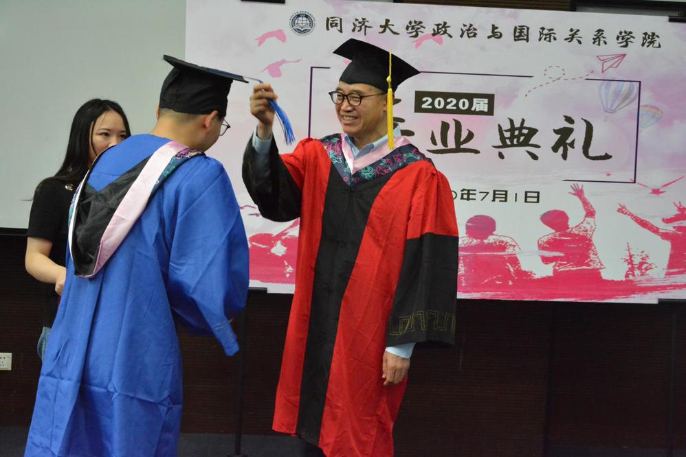 On the afternoon of July 1, 2020, the Commencement for Class of 2020 of the School of Political Science & International Relations (SPSIR) was grandly held in Lecture Hall C201 of the Sino-French Center. Tongji Distinguished Professor Men Honghua, Dean of SPSIR, delivered a speech. Professor Xu Hong, Secretary of the Party Committee, Associate Dean Zhong Zhenming, Professor Qiu Huafei, Director of the Academic Committee, Li Bin, Tongji Distinguished Professor and Deputy Director of the Academic Committee, Associate Professor Sun Ming, Assistant to the Dean and Head of the Department of Sociology, Professor Sun Lei, Head of the Department of Political Science, Professor Tian Liang, Professor Shao Chunxia, Professor Wang Chuanxing, Professor Song Lilei, Associate Professor Zhong Xiaohua, Associate Professor Ge Tianren, Assistant Professor Chung Young-june, Assistant Professor Liu Xiaoyang, Assistant Professor Li Boying and other teachers were present at the ceremony, which was moderated by Song Bo, Deputy Secretary of the Party Committee.