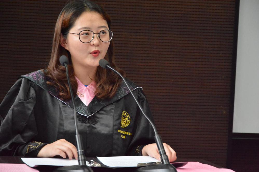 Liu Xinyuan, the undergraduatevaledictorian, expressed her most sincere gratitude to the teachers, relatives and friends for their guidance, accompany and help, as well as people from all walks of life for guaranteeing the study and life of the graduating students during the pandemic. Liu is also a freshman representative speaking four years ago, and in retrospect she shared one of her deepest feelings: staying positive at all times. The four years in university have brought her not only knowledge, but also the courage to face different difficulties in future life. Four years of study and life experience have taught her the meaning of moving towards the goal and acting early. Standing on today’s stage, she wants to be a reliable and passionate young person and to realize the big dream of being brilliant in life. She is eager to make her contribution to the development and prosperity of the motherland, with the commitment of "growing with the motherland and benefiting the society and world with science and education". Graduation is not the end, but a brand new start.