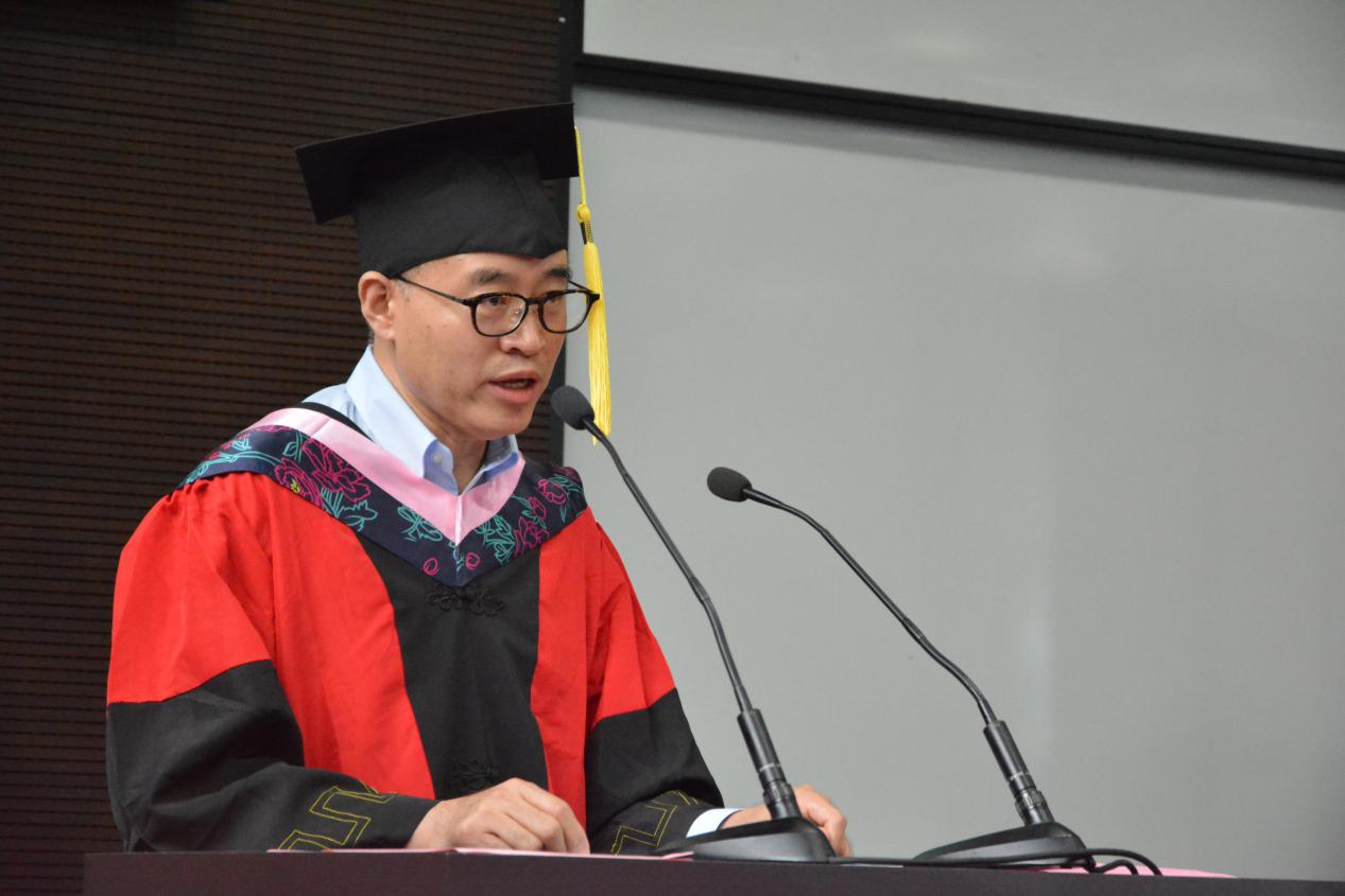 Dean Men noted that the Communist Party of China turns 99 years old today. Over the past 99 years,the CPC has gone through the storm and brought to China and the world a rainbow in the new era! To look at China against a global backdrop, we see the progress of the country and the needs of the world, and get a better understanding of the sentence from the Tao Te Ching: "the effect will be seen in the person, by the observation of different cases; in the family; in the neighborhood; in the state; and in the kingdom." The boundless love contained in it endows us with the treasure of profound philosophy, and boosts our confidence in China's rising to be a leader in promoting strategic cooperation and healthy competition! The profound changes unseen in a century and the pandemic have given the Class of 2020 graduates a unique experience. They are able to gain insights and confidence from life experience like this. Finally, Dean Men sincerely wished all students to be fearless and invincible in their life journey. He also expected them to keep their original aspiration and a global vision in mind and always pursue excellence.