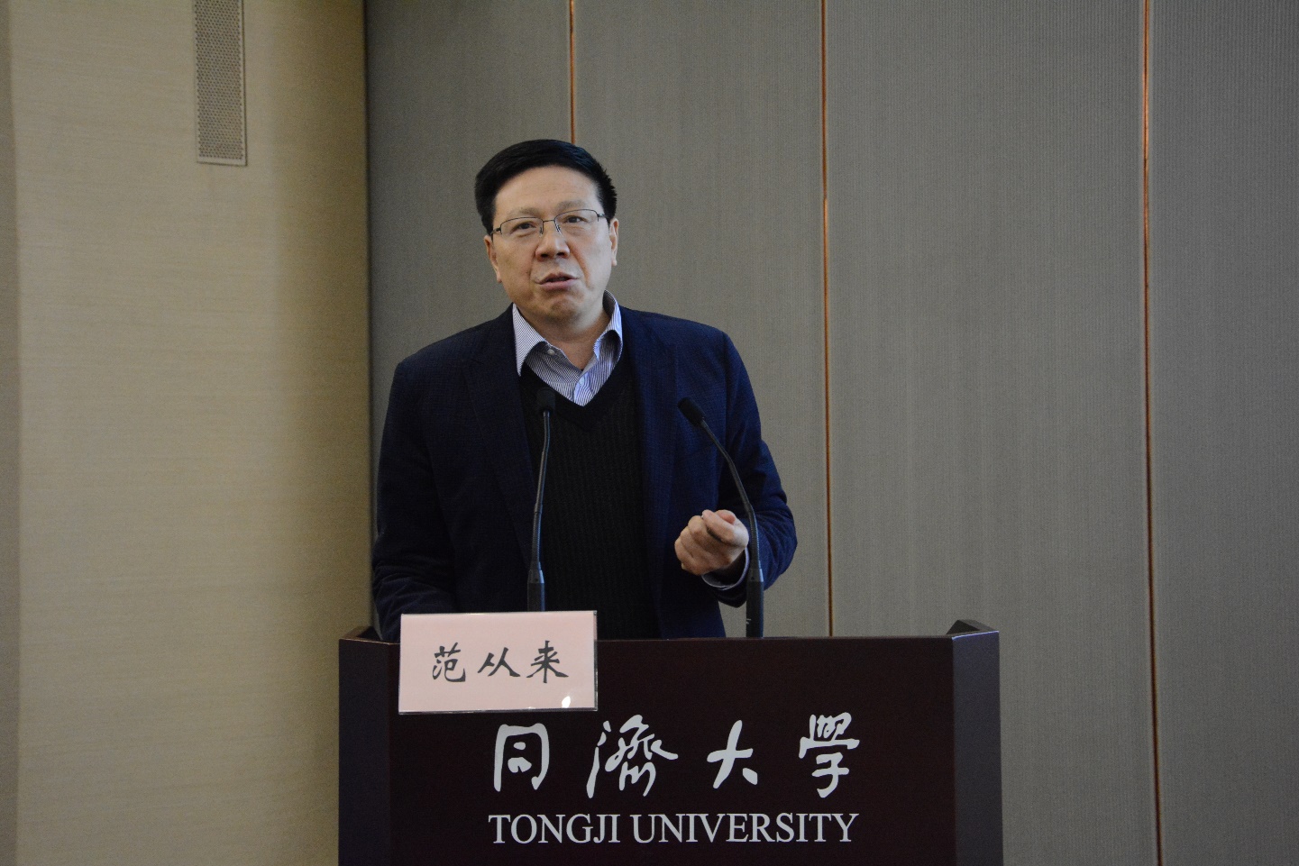 Co-hosted by Social Sciences in China Press (SSCP) and Tongji University, organized by the School of Political Science & International Relations (SPSIR) and the Institute for China & World Studies of Tongji University, and supported by the Liberal Arts Office, the School of Foreign Languages, and the Law School of Tongji University, the 12th China Social Sciences Frontier Forum was held in Tongji University on December 29, 2018. More than 100 experts and leaders from nearly 50 universities including the Chinese Academy of Social Sciences (CASS), Tsinghua University, Renmin University of China (RUC), Wuhan University, Nanjing University, Jilin University, Tongji University, Shanghai Jiao Tong University (SJTU), and nearly 20 local academies and associations of social sciences gathered in the lecture hall on the first floor of Yifu Building to discuss major issues of long concern by the Chinese community of philosophy and social sciences in the past 40 years of reform and opening up, around the theme of “Review of Chinese Philosophy and Social Sciences in the Past 40 Years of Reform and Opening Up and the Mission of Chinese Philosophy and Social Sciences in the New Era”. Professor Fang Shouen, Secretary of the Party Committee of Tongji University, researcher Zhang Jiang, Editor-in-Chief of SSCP, Shi Jun, Deputy Resident Director of the Economic Committee of the 12th National Committee of the CPPCC, and Professor Zhou Hanmin, Vice Chairman of the Shanghai Municipal Committee of the CPPCC, attended the opening ceremony and delivered speeches. The opening ceremony was moderated by Wang Limin, Executive Deputy Editor-in-Chief of SSCP.