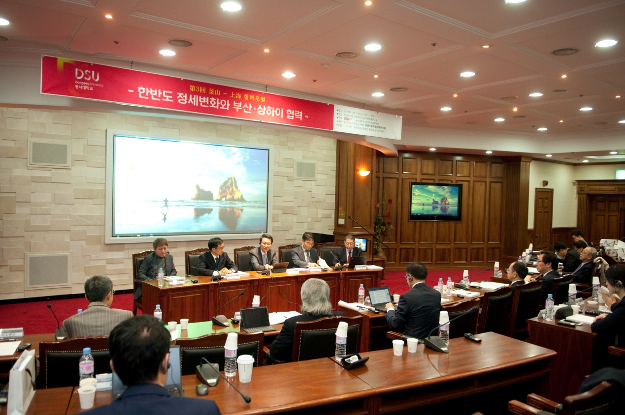 On October 13, themed “Changes in the Situation on the Korean Peninsula and Busan-Shanghai Cooperation”, the forum officially kicked off in the International Conference Hall on the sixth floor of Minseok Library, DSU. In the opening speech, Ambassador Shin Jung-seung, Director of the Center for Chinese Studies of DSU, introduced the background of this forum and the main guests attending this forum. DSU President Prof. Chang Je-kuk delivered a welcome speech on behalf of DSU and extended a warm welcome to the participants from China and South Korea.