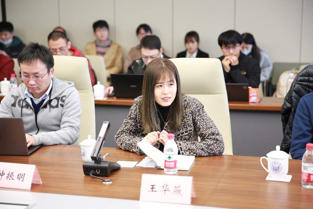 This meeting was moderated by Dean Men Honghua, and attended by more than 50 teachers and students of SPSIR, including Party Secretary Professor Xu Hong, Associate Dean Professor Zheng Chunrong, Associate Dean Associate Professor Zhong Zhenming, Professor Shao Chunxia, Professor Yu Minjiang, and Professor Wang Mingguo. This meeting was held in a hybrid way, allowing some teachers and students to join the discussion via the Internet.