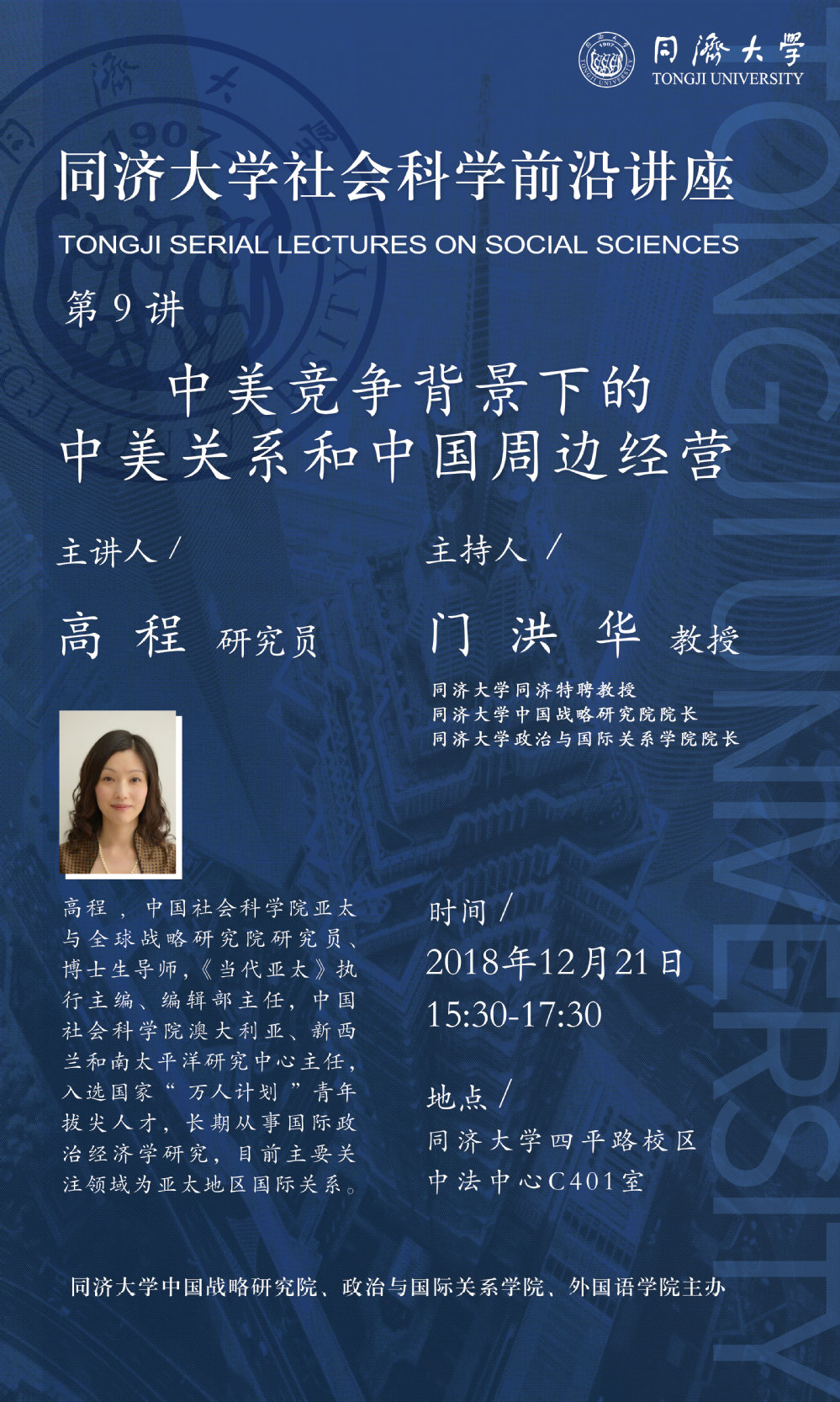 2020年11月27日,由同济大学中国战略研究院、同济大学政治与国际学院主办的同济大学社会科学前沿讲座第32讲在同济大学衷和楼十楼报告厅成功举办。本次讲座邀请到中国社会科学院世界经济与政治研究所《世界经济与政治》副主编徐进研究员为同济师生做题为“大...
